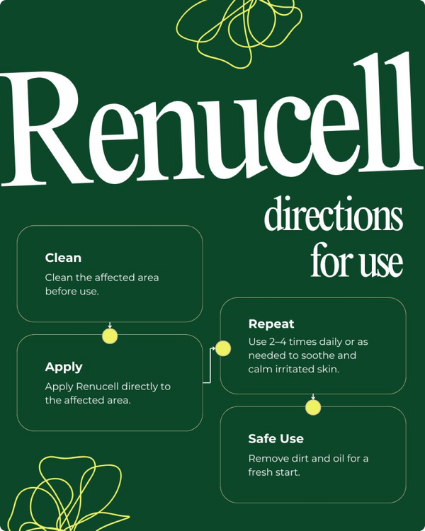 Renucell® is built around ingredients that support real skin comfort and recovery. Each one is included for a reason: to help calm visible irritation, restore barrier support, and give dry, reactive skin the daily care it needs.