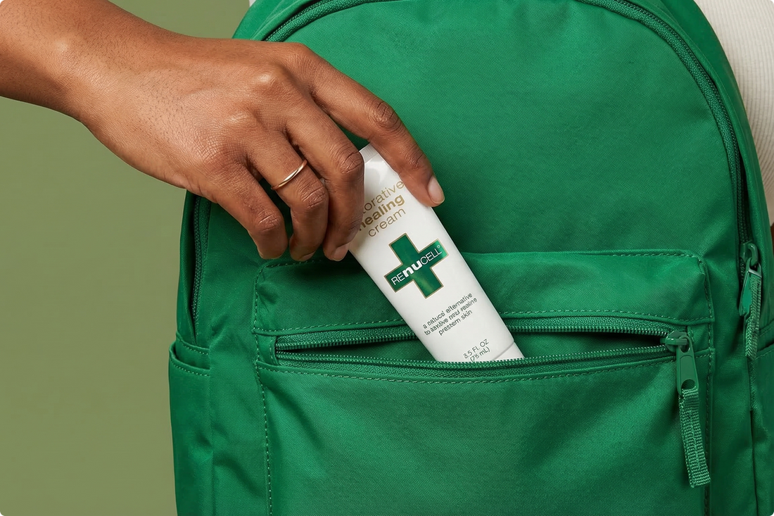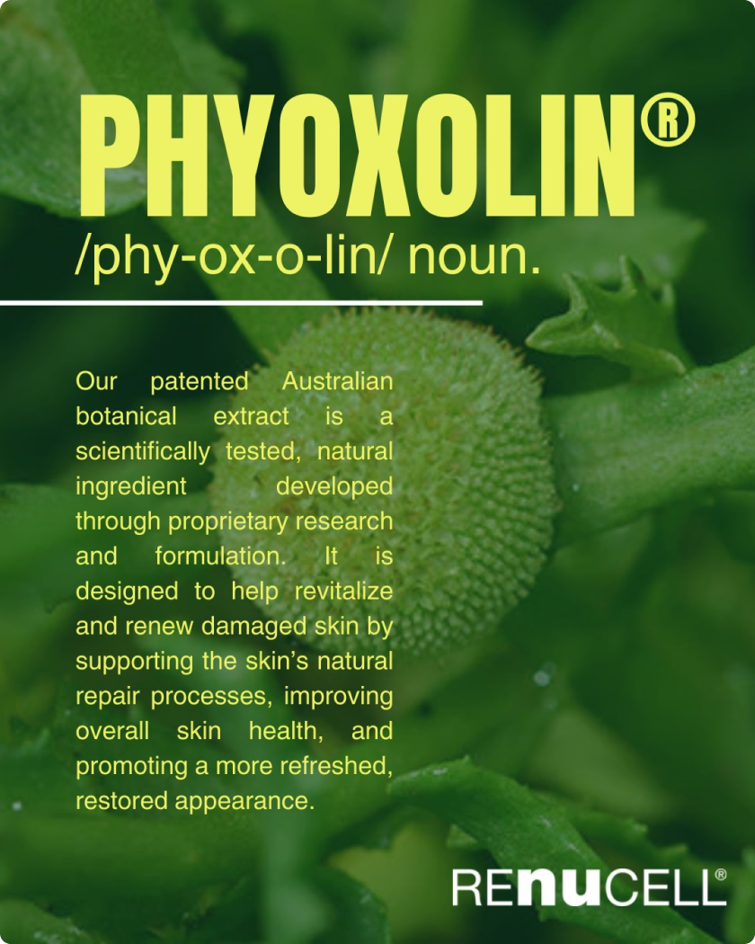 Renucell works by combining proprietary PHYTOXOLIN™ with skin-supportive botanicals and hydrators to help soothe dryness, nourish the skin, and support its natural recovery process.