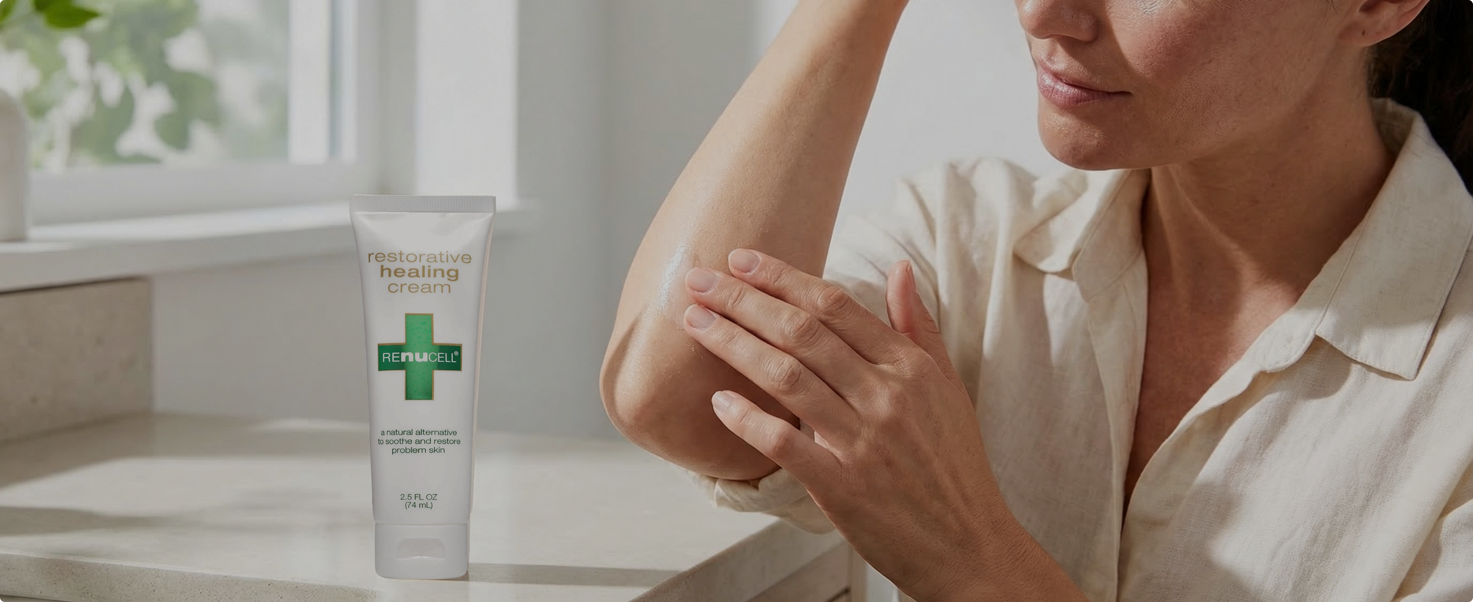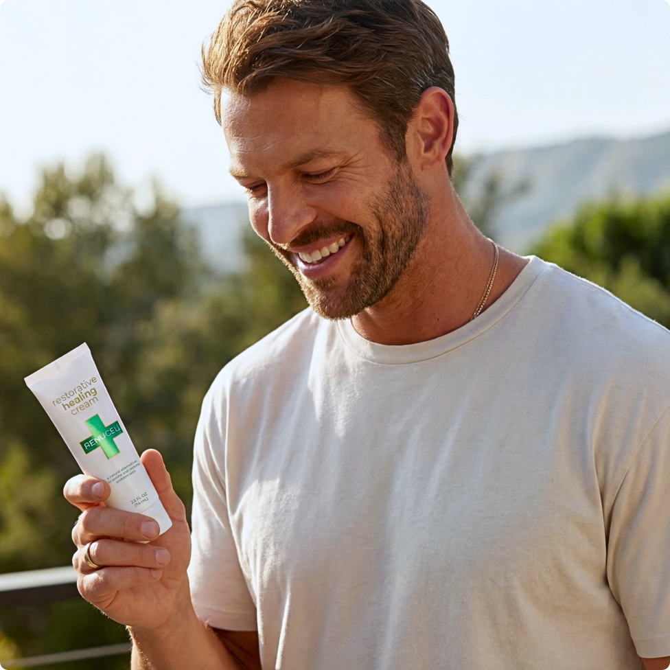 At Renucell®, we believe compromised skin deserves more than temporary moisture. Our promise is to create premium restorative care that helps calm stressed skin, support the protective barrier, and bring lasting daily comfort to skin that needs extra support.